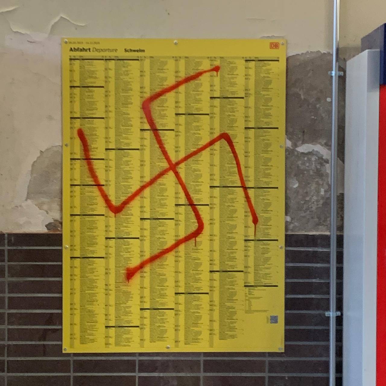 Schwelm: Rechtsextreme und antisemitische Symbole und Sprüche prangen an den Wänden. Die unbekannten Täter haben mit roter, weißer und schwarzer Farbe den Eingangs- und Innenbereich des Bahnhofs beschmiert. Unter anderem haben sie Hakenkreuze und SS-Runen aufgesprüht. Jetzt ermittelt der Staatsschutz. Die Polizei geht davon aus, dass die Täter zwischen 2.00 und 4.30 Uhr heute Morgen zugeschlagen haben. Sie bittet um Zeugenhinweise.