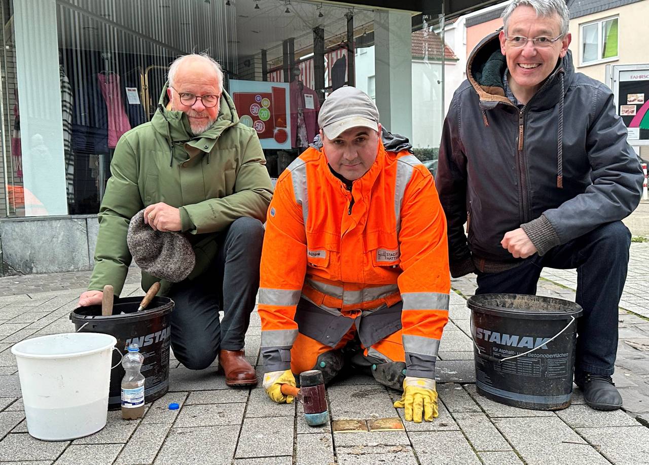 Zu der feierlichen Verlegung im Dezember waren Angehörige der Opfer aus Amsterdam, Wien, Berlin und Düsseldorf angereist. Auch der Künstler, Gunter Demnig, war gekommen. Nur die Steine, die hatten es nicht nach Hattingen geschafft. Der Künstler hatte sie in seinem Atelier vergessen. Jetzt wurden sie mit etwas Verspätung in der Altstadt, in Niederwenigern und in Welper verlegt.