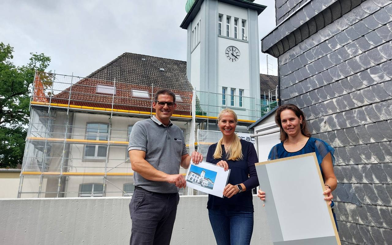 Das Rathaus in Herdecke wird saniert. Jetzt sieht man die neue Farbe am Rathausturm. Das Gerüst wurde zurückgebaut. Der Turm ist hell-grau und weiß. Die Farbe sei nicht nur schön, sondern auch funktional: besonders langlebig, heißt es vom Gebäudemanagement der Stadt. Nach den Malerarbeiten können jetzt die Dacharbeiten beginnen. Es gibt neue Dachpfannen und innen Brandschutztüren. Im Zuge der Sanierung erhält die komplette Außenfassade noch einen neuen Anstrich.