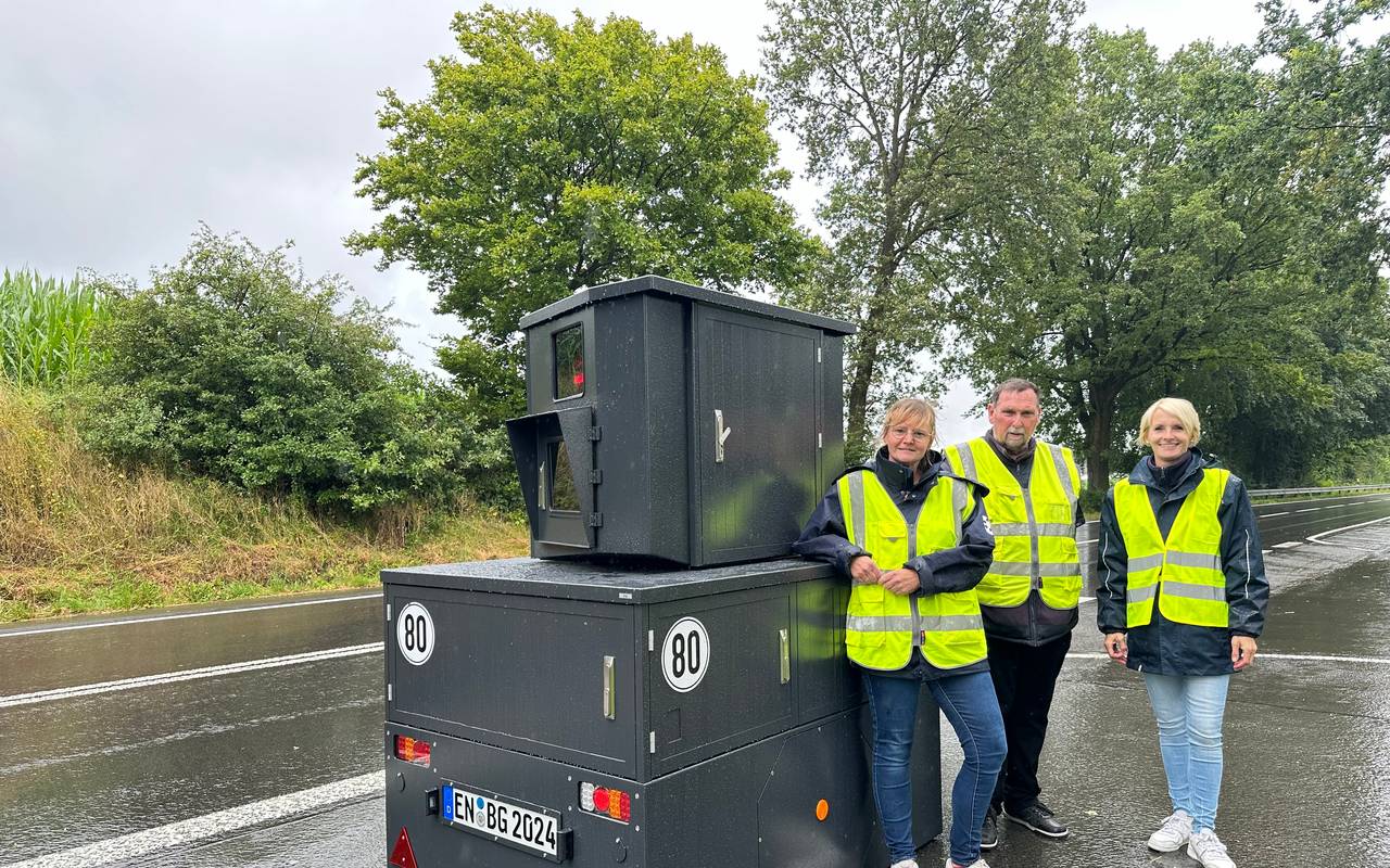 Mehr Tempokontrollen auch zu ungewöhnlichen Zeiten - darauf setzt ab sofort die Bußgeldstelle der Kreisverwaltung, um den Verkehr sicherer zu machen. Der Kreis hat einen Blitzer-Anhänger gekauft. Der kann ganz ohne Personal blitzen - also auch nachts oder am Wochenende. Die unscheinbare graue Kiste blitzt in beide Richtungen. Und sie kann - anders als herkömmliche Blitzer-Autos - auch in Kurven oder an Engstellen blitzen. Schussicheres Panzerglas soll den Anhänger gegen Vandalismus schützen.