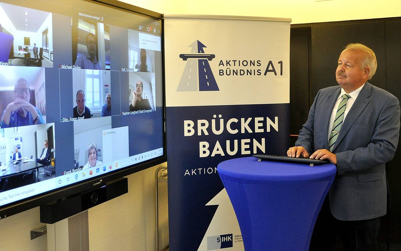 Region: Das Thema sorgte beim letzten Termin des Aktionsbündnisses A1 für gemischte Gefühle. Zum einen sind die Anrainer-Städte von Kamen bis Remscheid erfreut, dass die Arbeiten am ersten Brückenteil der Talbrücke Volmarstein abgeschlossen sind und der Verkehr wieder auf sechs Streifen läuft. Anderseits bleibt der Zeitpunkt für die Öffnung der Auffahrt Volmarstein weiter unklar. Laut DEGES muss gutachterlich geklärt werden, ob die engen Baustellenstreifen einen Einfädelungsprozess der Auffahrt verkraften. Um den Prozess zu beschleunigen gibt es Anregungen wie eine Zuflussregelung, Geschwindigkeitsbeschränkung oder sogar der Einsatz eines Blitzers.