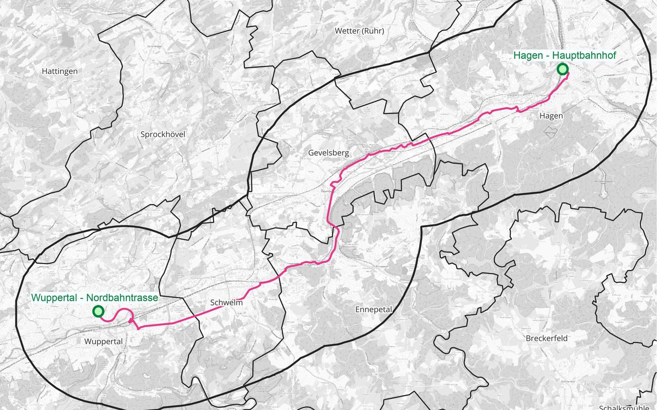 Eine schnelle Radverbindung von Wuppertal durch den südlichen Ennepe-Ruhr-Kreis nach Hagen wünschen sich sowohl der Kreis als auch die beiden Großstädte. Ob das unter Einbindung der bestehenden Radwege möglich ist, wird zurzeit geprüft. Jetzt sollen auch die Erfahrungen der radfahrenden Bürgerinnen und Bürger da einfließen. Seit dieser Woche können Interessierte an einer Online-Umfrage zu dem Thema teilnehmen. Die Internetseite dazu haben wir auf radio ennepe ruhr.de verlinkt. Ausgangspunkt für die Radverbindung ist das seit Jahren bestehende Radwegenetz des RVR in Verbindung mit den Radverkehrskonzepten der Städte. Angedacht ist eine Verbindung zwischen Wuppertaler Nordbahn- und Schwarzbachtrasse bis zum Hagener Hauptbahnhof - unter Anbindung der Zentren von Gevelsberg, Ennepetal und Schwelm.