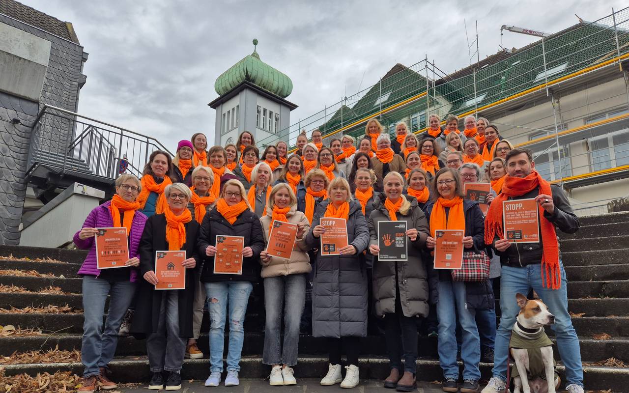 Heute ist der Internationale Tag gegen Gewalt an Frauen. Im Ennepe-Ruhr-Kreis laufen dazu heute verschiedene Aktionen. In Schwelm läuft noch bis Freitag de Woche gegen Gewalt an Frauen. In Herdecke haben heute viele Frauen orange getragen. Denn der Tag gegen Gewalt an Frauen wird auch Orange Day genannt. Die Gleichstellungsbeauftragte von Herdecke, Saskia Dauber, hat gemeinsam mit Bürgermeisterin Dr. Katja Strauss-Köster die Kolleginnen der Verwaltung aufgerufen, einen orangenen Schal für eine Fotoaktion zu tragen.