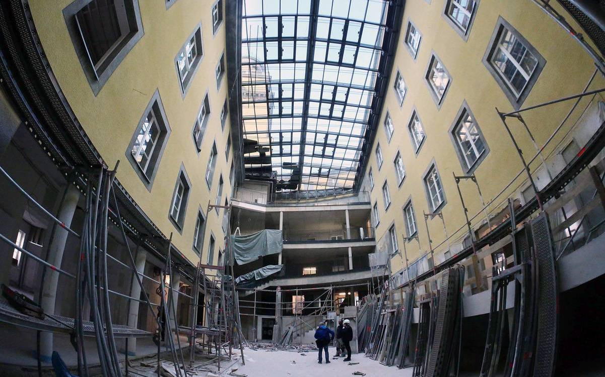 Witten: Mitten im Südflügel ist der große, hohe Raum seit einigen Tagen sichtbar. Das große achtstöckige Gerüst ist verschwunden und die endgültige Form des Forums lässt sich erkennen.