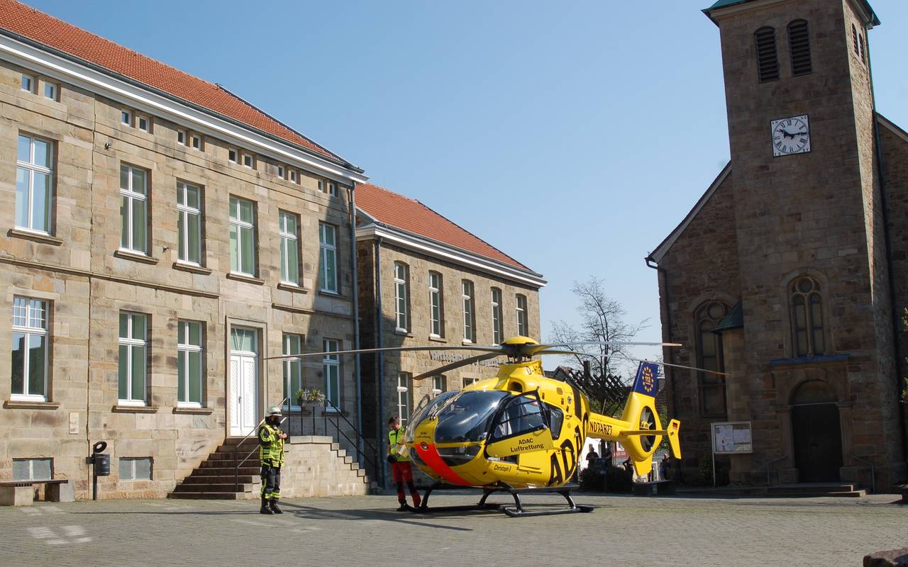 Hattingen: Es handelte sich eigentlich um einen gewöhnlichen medizinischen Hilfteinsatz. Doch weil der Hattinger Notarzt schon bei einem anderen Patienten war, musste Hilfe aus der Luft angefordert werden. Der Rettungshubschrauber Christoph 8 landete mitten auf dem Marktplatz im historischen Ortskern von Blankenstein. Mit der Drehleiter der Feuerwehr wurde der Patient aus seiner Wohnung geholt. Ein Rettungswagen brachte ihn in eine Bochumer Spezialklinik. Der Notarzt des Rettungshubschraubers begleitete den Transport im Rettungswagen.