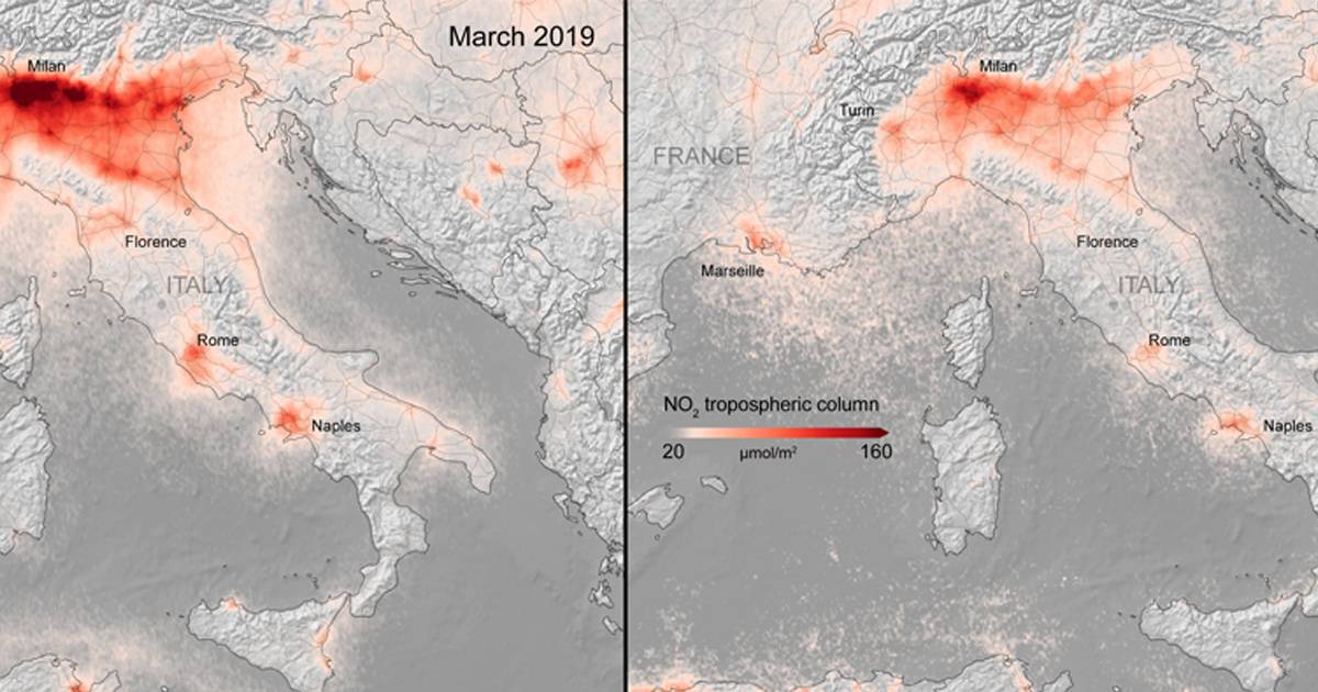 Dies sei vor allem in den Metropolen Paris, Madrid und Mailand deutlich geworden. Die Satellitenbilder, die die ESA zur Verfügung gestellt hat, belegen das.