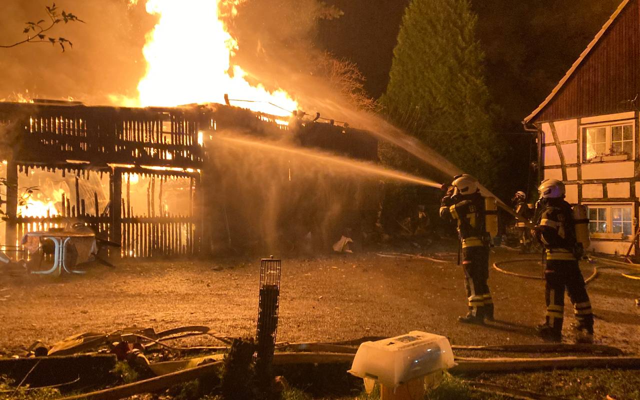 In Elfringhausen stand eine Scheune komplett in Flammen. Da direkt daneben ein Mehrfamilienhaus stand, setzte die Feuerwehr alles daran, das zu retten. Auch der angrenzende Wald blieb von dem Feuer verschont. Teile der Scheune stürzten ein, den Rest riss die Feuerwehr ein, um sicher an der Einsatzstelle arbeiten zu können. Rund fünf Stunden dauerten die Löscharbeiten, um 7 Uhr heute Morgen hieß es dann „Feuer aus“. Insgesamt waren 80 Feuerwehrleute aus Hattingen und Sprockhövel im Einsatz. Die Polizei muss jetzt die Brandursache ermitteln.
