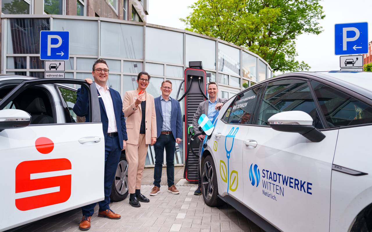 Die Stadtwerke und die Sparkasse Witten haben ihre erste Schnellladesäule für E-Autos in Betrieb genommen. Sie steht direkt an der Hauptstelle der Sparkasse an der Ruhrstraße. Zwei Autos können dort gleichzeitig Strom tanken. Sie steht allen Autofahrerinnen und -fahrern zur Verfügung. Fahrzeuge mit dem entsprechenden Anschluss können dort in einer halben Stunde von 0 auf 80 Prozent geladen werden. Am Backhaus im Stadtteil Annen haben die Stadtwerke eine zweite Schellladesäule in Betrieb genommen. In Kürze soll eine weitere an der Sparkasse in Heven stehen.