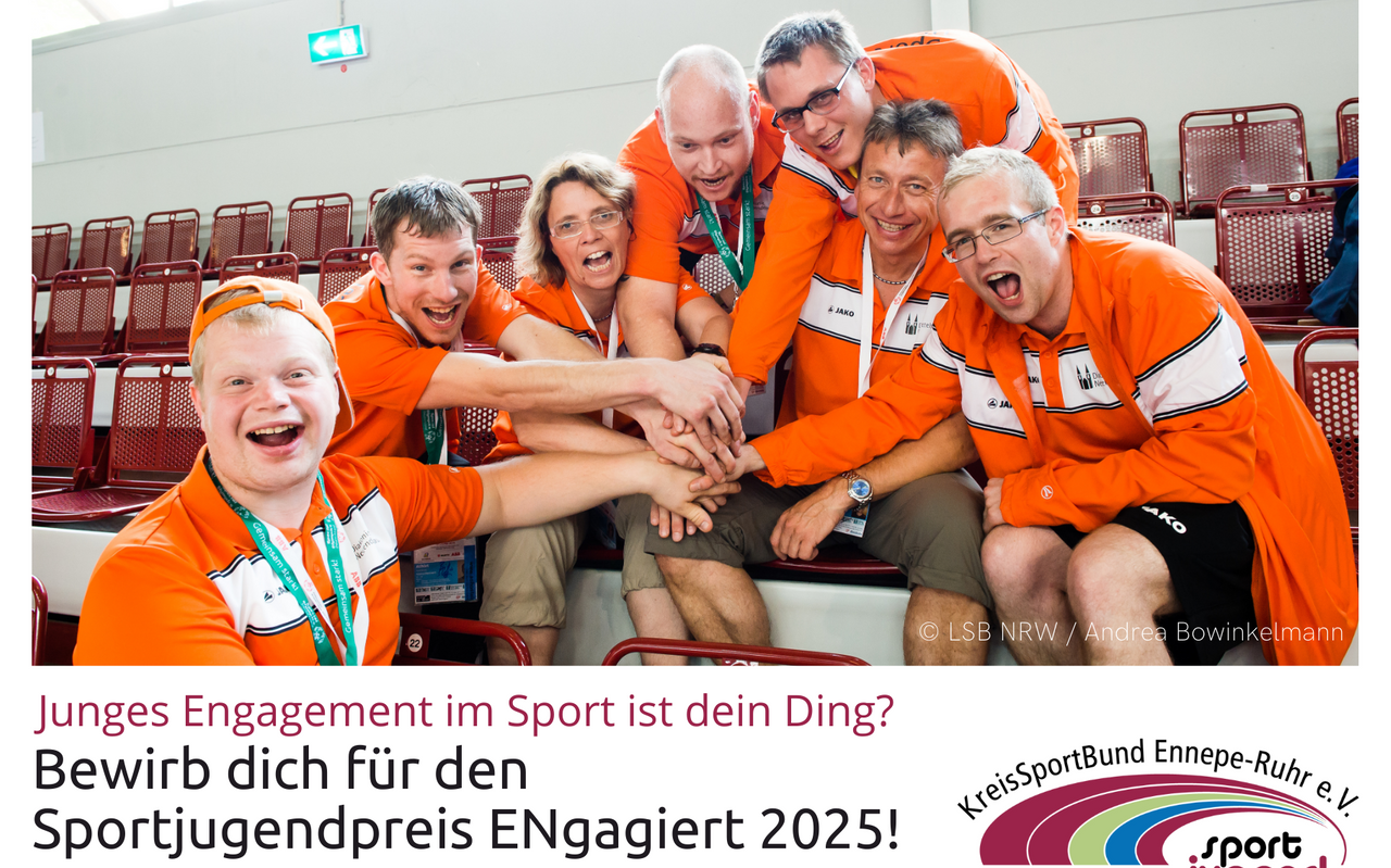 Ab jetzt laufen die Bewerbungen für den Sportjugendpreis EN. Der Preis ehrt Jugendliche und junge Erwachsene bis 27 Jahre, die sich aktiv in die Jugendarbeit im Sport einbringen. Also zum Beispiel Übungsleiter oder Sporthelfer sind. Bis zum 31. August (2025) läuft das Bewerbungsverfahren. Das Preisgeld beträgt 500 Euro. Bewerbungen an: Sarah Quirbach (sarah.quirbach@ksb-en.de) oder unter diesem Link.