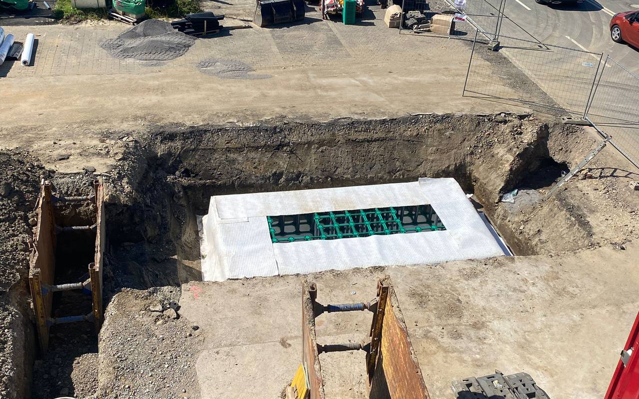 Der Rathausplatz in Sprockhövel wird wohl planmäßig im Herbst dieses Jahres fertig. Davon geht die Stadt aus. Aktuell laufen noch Arbeiten am Vorplatz. Die Flächen habe man zudem so geplant, dass es auch bei extremem Regen nicht zu Überschwemmungen kommt.