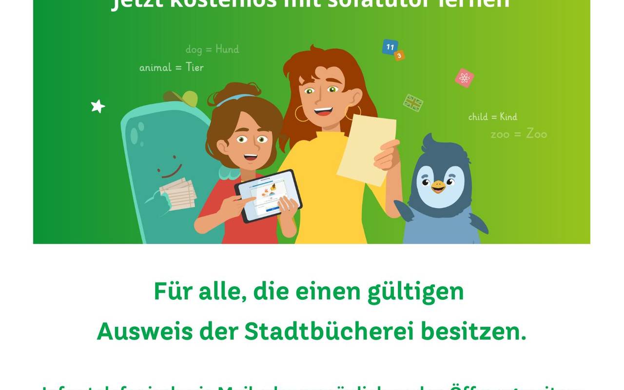 Zwei Wochen lang können sie Zugang zur Online-Lernplattform "sofatutor" erhalten. Die bietet für alle Klassenstufen zahlreiche Hilfsmittel wie Videos, Lernspiele oder einen Hausaufgaben-Chat. Alle Kinder und Jugendlichen, die einen Mitgliedsausweis der Bücherei besitzen, können vor Ort, telefonisch oder per Mail einen Code erhalten, mit dem der Zugang zwei Monate lang möglich ist.