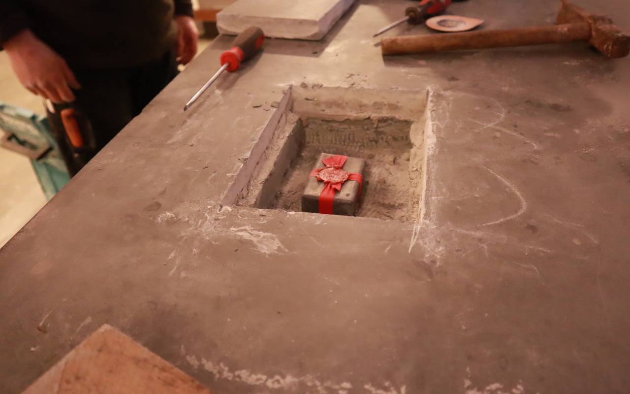 Die ersten Arbeiten haben jetzt begonnen. Besondere Vorsicht war da bei den Reliquien, Knochenreste des heiligen Engelbert, geboten. Die sind immerhin 800 Jahre alt. Einfach war noch der Transport eines Glaszylinders mit einem Ellenknochen des Heiligen ins Zwischenlager. Schwieriger war es dann mit weiteren Knochenteilen. Die waren im Altar verbaut, der dafür aufgefräst werden musste. Dazu wurde der zwei Tonnen schwere Altar zunächst aus der Kirche gebracht. Der Kölner Erzbischof Engelbert war 1225 in einem Hohlweg von Gefolgsleuten des Grafen Friedrich von Isenberg erschlagen worden. Friedrichs Stammsitz in Hattingen, die Isenburg, wurde daraufhin geschleift.