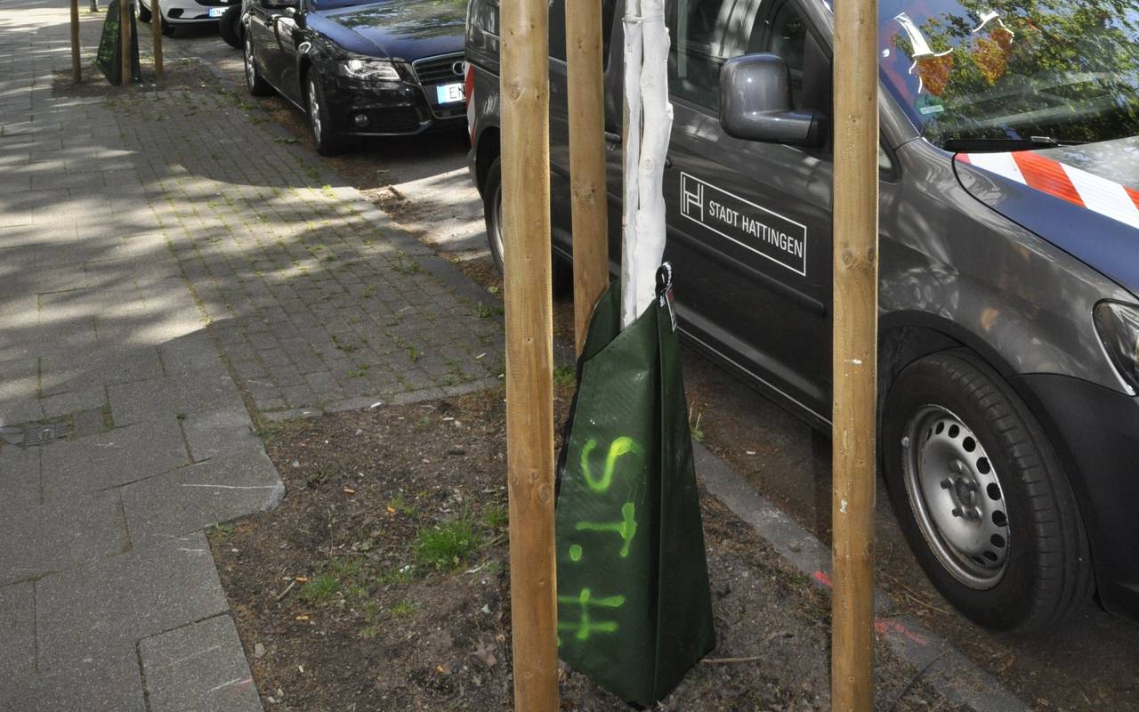 Hattingen: Regen ist in diesem Frühjahr schon wieder Mangelware. Gerade junge Bäume benötigen jetzt viel Wasser. Die Stadt hat an den Stämmen jetzt Wassersäcke angebracht. Die fassen rund 60 Liter Wasser, das durch kleine Löcher sickert und so die Wurzeln besser erreicht. Besonders in den trockenen Sommermonaten könnten die Behälter mehrmals am Tag nachgefüllt werden, heißt es. Die Stadt hofft dabei auch auf die Unterstützung durch die Anwohner. Die Bewässerungsmethode hat sie sich in Bochum und Düsseldorf abgeschaut.