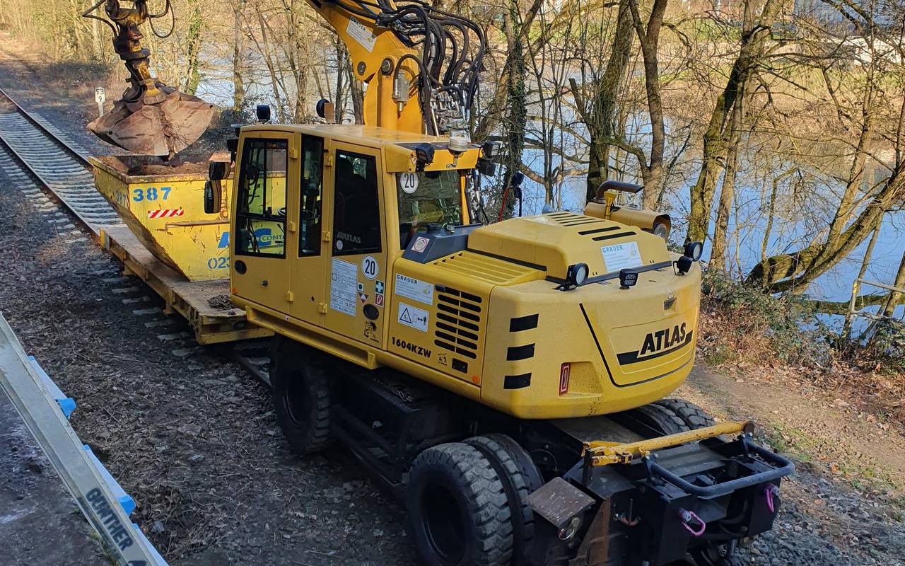 An den Gleisen der Museumsbahn in Hattingen werden zurzeit Überflutungsschäden beseitigt. Es handelt sich um den Streckenabschnitt unterhalb des Gemeindewaldes in Welper.