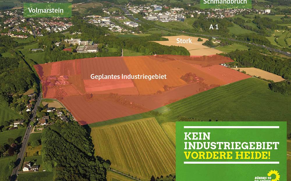 Die Grünen halten es für sinnvoll, ehemalige Industriestandorte oder Brachflächen zu nutzen. Große Naturflächen wie die Vordere Heide müssten aber erhalten werden.