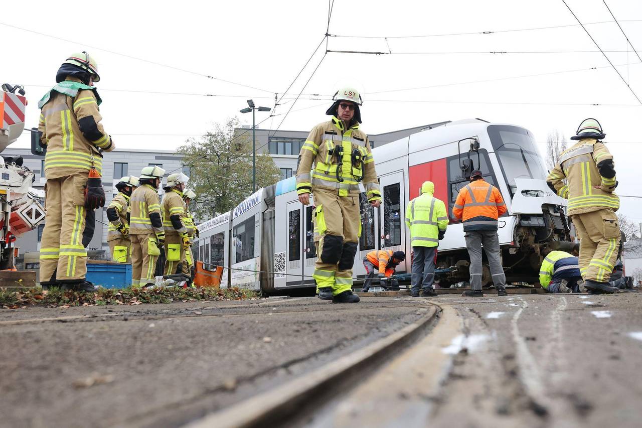 Wie ein dpa-Reporter beobachtete, brach die Straßenbahn bei dem Unfall in zwei Teile, weil eine Kupplung riss. Ein Teil wurde gegen mehrere Oberleitungsmasten geschleudert. Die Feuerwehr war mit einem Großaufgebot vor Ort.