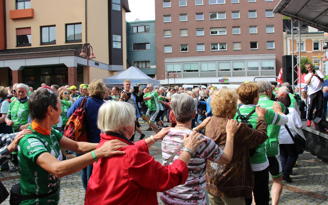 Ennepe-Ruhr: Es ist die größte wohltätige Radsportveranstaltung in Deutschland. Am Samstag haben die rund 200 Teilnehmer bei uns im Ennepe-Ruhr-Kreis gehalten - auf dem Milsper Marktplatz in Ennepetal und auf dem Butera-Platz in Gevelsberg - vor den Augen hunderter Zuschauer. Dabei waren wieder viele bekannte Sportler, wie Fußball-Trainer Felix Magath, Fußball-Weltmeister von 1974 Jupp Kapellmann und der Olympiasieger im Schwimmen Klaus Steinbach. Auf ihrer Tour sammeln sie Geld für krebskranke Kinder und deren Familien. Allein in Ennepetal sind in den letzten Wochen Spenden in Höhe von fast 68.000 Euro zusammengekommen - die Schecks sind am Samstag den Organisatoren der Tour der Hoffnung überreicht worden.