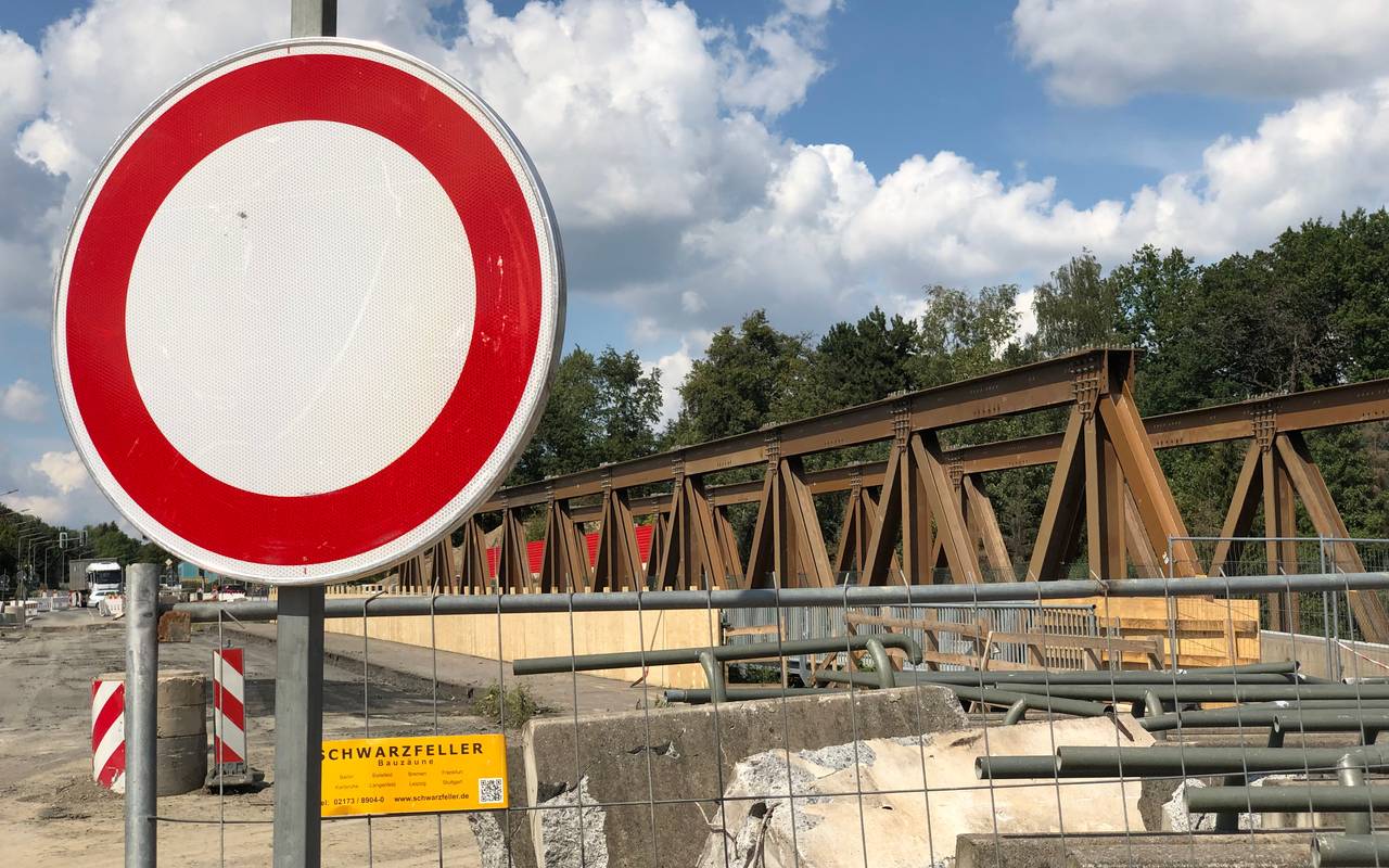 Die alte Brücke ist marode, für Schwerlaster war sie schon seit einigen Jahren gesperrt. Deshalb kommt dort eine neue Überquerung hin, solange steht dort die Behelfsbrücke.
