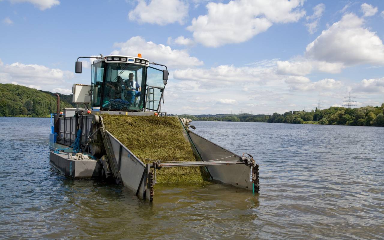 Dennoch wird regelmäßig gemäht, um die Pflanzen klein zu halten. So ist das Boot einige Male in der Woche auf dem Wasser.