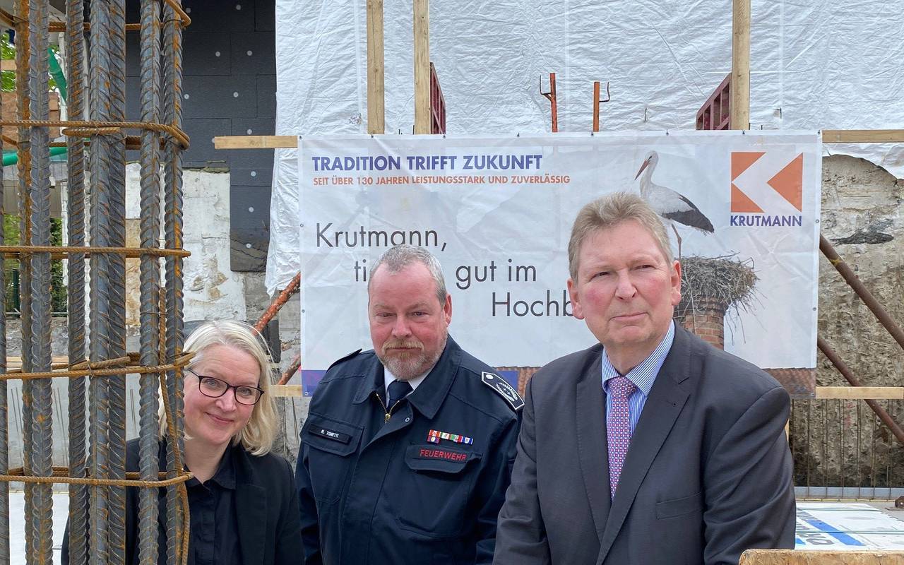 Der Neubau der Feuerwache Wengern hat begonnen. Die Feuerwehr und die Stadt Wetter haben jetzt offiziell die Grundsteinlegung gefeiert. Letztes Jahr war das alte Gebäude abgerissen worden. Das neue Gebäude wird auf demselben Grundstück gebaut. Die Feuerwehr bleibt damit im Ortskern. Der Neubau soll im Frühjahr 2025 fertig sein, die neue Wache soll drei Hallen haben. Der Neubau kostet die Stadt Wetter rund 3,3 Millionen Euro.