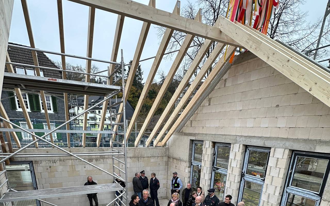 Das neue Zuhause der Freiwilligen Feuerwehr in Wetter macht Fortschritte. Am Wochenende konnten Stadt und Feuerwehr das Richtfest des neuen Gebäudes in Wengern feiern. Begonnen mit dem Abriss der alten Wache laufen dort seit Frühjahr 2023 die Arbeiten. Jetzt folgen nach Fertigstellung des Rohbaus die Außenhülle sowie die Elektro-, Heizungs- und Sanitärarbeiten. Wenn alles nach Plan läuft kann die Feuerwehr Mitte nächsten Jahres einziehen.