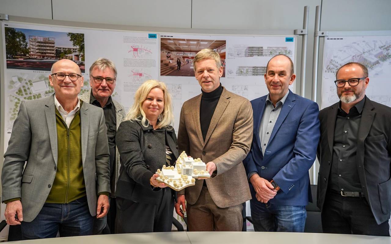 Noch bis zum Ende des Jahrzehnts soll in Witten ein Neubau der Otto-Schott-Gesamtschule entstehen. Neben allen noch notwendigen politischen Beschlüssen hat der Neubau jetzt einen ersten Schritt gemacht. Der Architektenwettbewerb hat einen Siegerentwurf. Die Jury hat sich für den Entwurf des Architekturbüros a+r aus Stuttgart entschieden. Insgesamt hatten sich 131 Büros beworben; 15 gingen in die Endrunde. Eine Machbarkeitsstudie hatte vor drei Jahren ergeben, dass Abriss und Neubau der Otto-Schott-Gesamtschule die wirtschaftlichste Option sind. Zurzeit ist die Schule übergangsweise in der ehemaligen Overbergschule untergebracht.