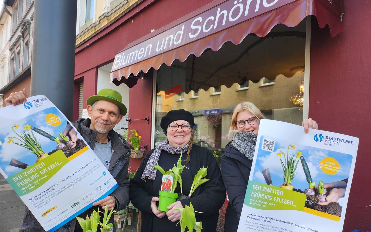 Die Stadtwerke Witten und das Stoffgeschäft Naturtuche sammeln ab sofort wieder verblühte Blumenzwiebeln. Im Herbst werden die dann wieder ausgepflanzt. Die Aktion findet bereits zum dritten Mal statt. Letztes Jahr sind 10.000 Blumenzwiebeln zusammengekommen. Die Blumenzwiebeln können jetzt den Frühling über an verschiedenen Stellen in Witten abgegeben werden. Die Aktion läuft bis Mitte/Ende Mai.
